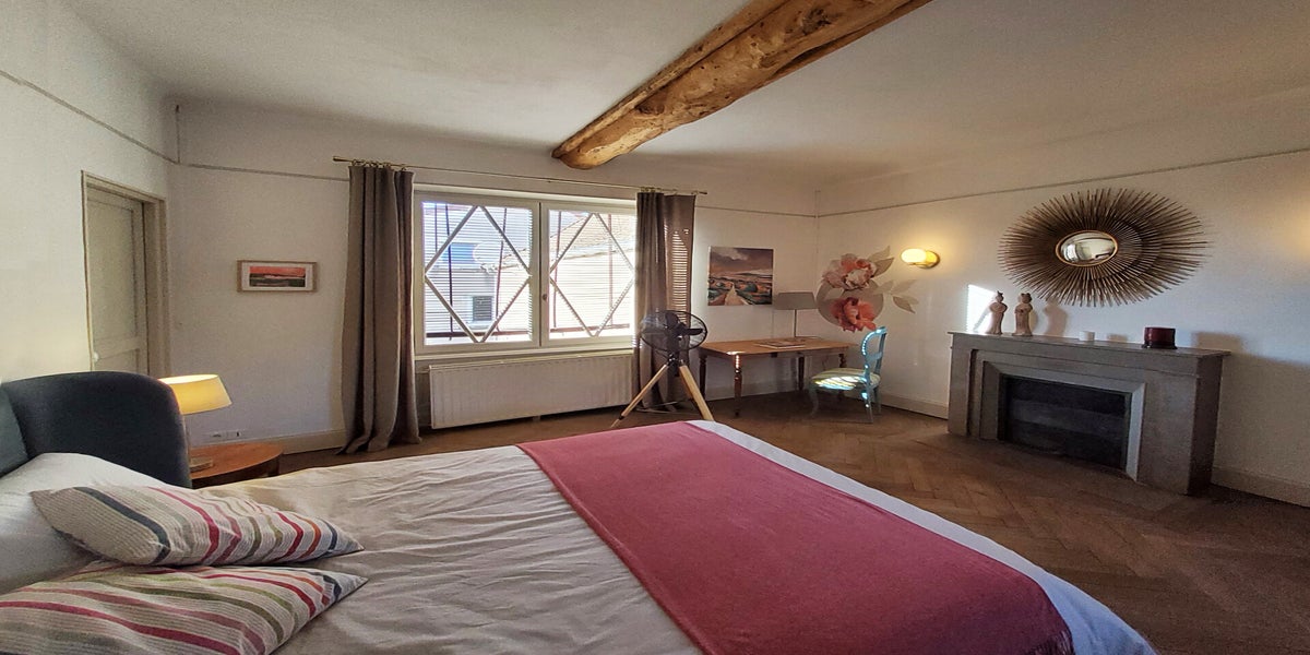 This large bedroom of 41m2 is set on the second floor and features a beautiful view of the garden and some part of the village of Etrigny. This bedroom is on the second floor and is accessible by stairs only.